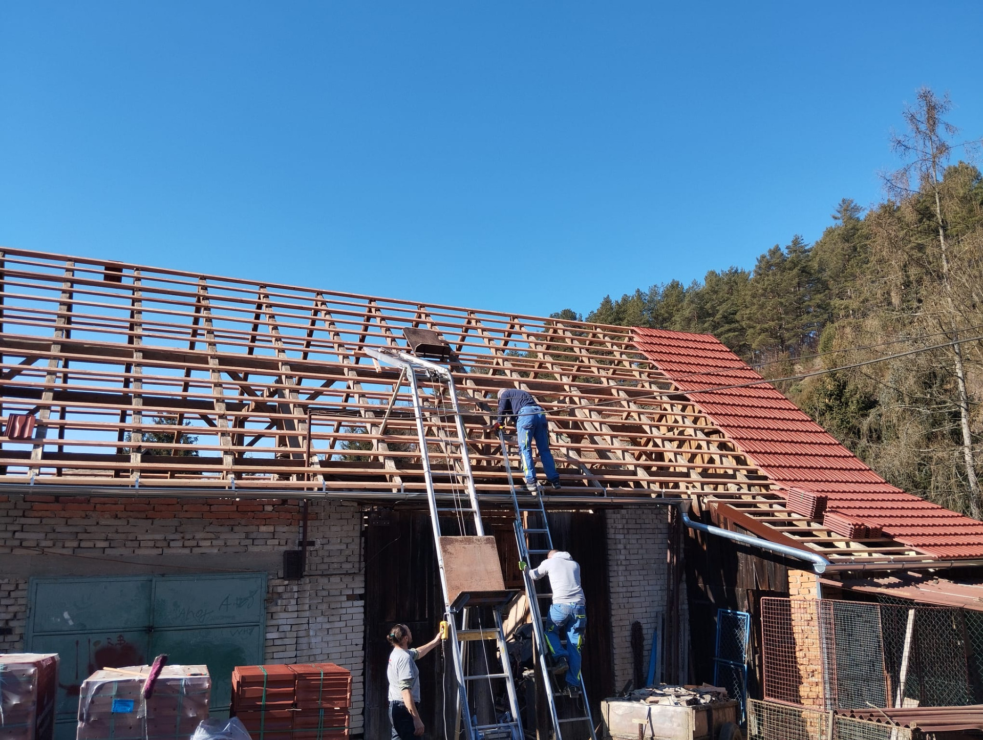 Provádíme výstavbu nových střech i rekonstrukce starších střech z pálených tašek, betonové i plechové střešní krytiny.